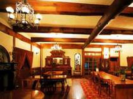 高い天井と太い梁や漆喰の壁の古民家風で解放感抜群です。
